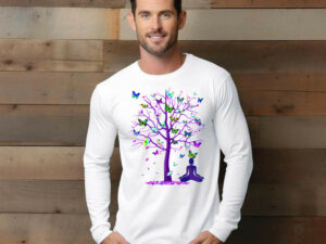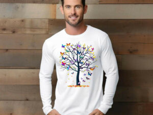 Butterfly Tree Meditation Long Slevee Shirt Cute Butterfly Graphic Tee Present Ideas For Girlfriend