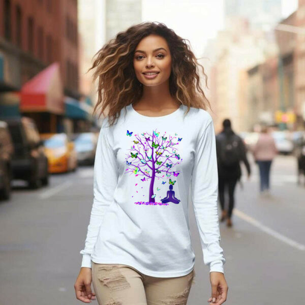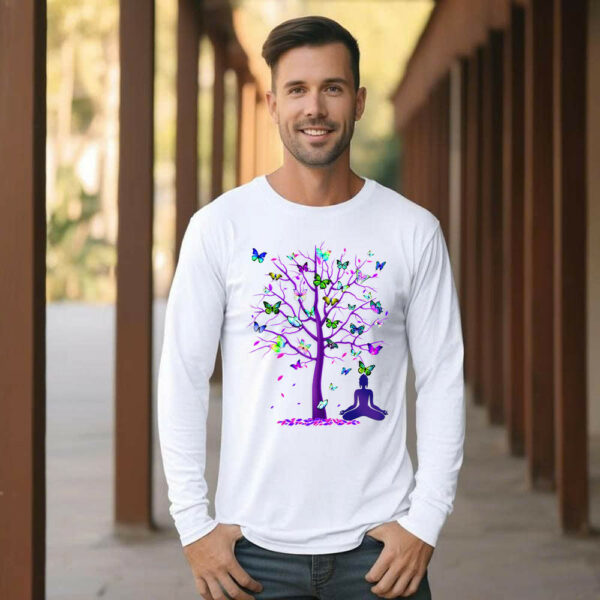Butterfly Tree Meditation Long Slevee Shirt Cute Butterfly Graphic Tee Present Ideas For Girlfriend.
